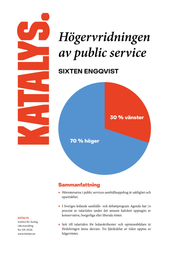 Vi på Katalys är nog långt ifrån ensamma om att ha haft magkänslan att public service under senare år tagit tydliga kliv högerut. Det gäller både ämnesvalen och vilka som bjudits in, samt allt fler inslag där högersidan fått stå helt oemotsagd eller debatterat med sig själva. För att testa denna magkänsla bad vi KvantAB, […]